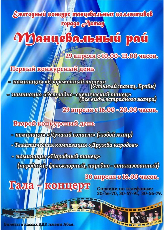 Жителей и гостей города Актау приглашают на Ежегодный конкурс танцевальных коллективов "Танцевальный рай".