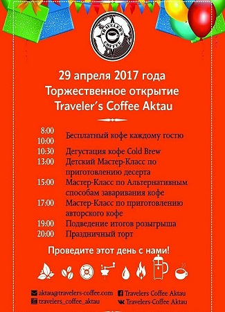 "Traveler's Coffee Aktau" спешит сообщить о своем торжественном открытии.