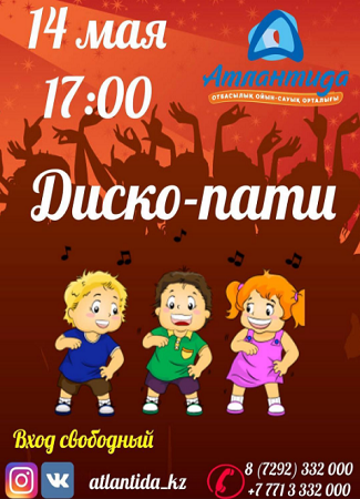 "Атлантида" приглашает посетить развлекательную программу для детей "Диско-пати".