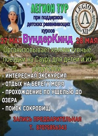 "Легион тур" при поддержке "Вундеркинд" организовывает коллективные поездки на Сауру для детей и родителей.