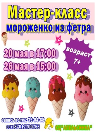 В семейном центре "Апельсинка" состоится мастер-класс "Мороженко из фетра".