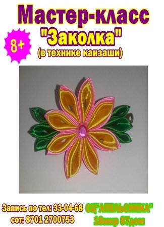 Детский развивающий центр "Апельсинка" приглашает на мастер-класс "Заколка" в технике канзаши.