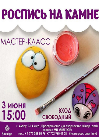 В честь начала лета и школьных каникул салон творчества "ОнерLand" организует детский мастер-класс по росписи камней.