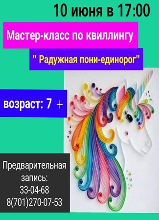 Детский развивающий центр "Апельсинка" приглашает детишек на мастер-класс по квиллингу "Радужная пони-единорог".
