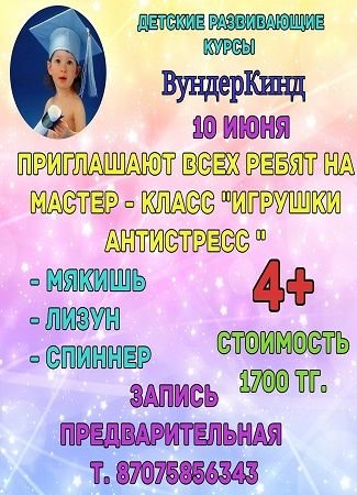 Детские развивающие курсы "ВундерКинд" приглашают деток на мастер-класс "Игрушки-антистресс".