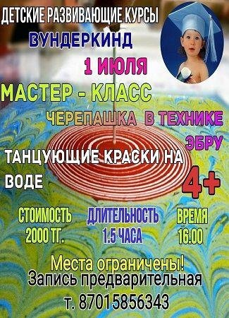 "ВундерКинд" приглашает всех ребят посетить мастер-класс "Черепашка в технике эбру".
