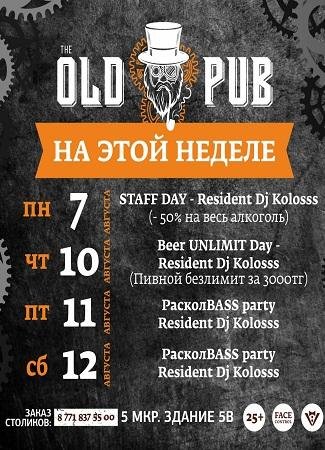 Весь месяц в "The Old Pub" вас ждут самые яркие события! А для того, чтобы быть в курсе всех мероприятия, бар подготовил для дорогих гостей расписание на август.
