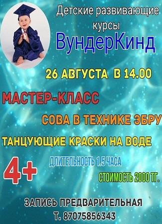 Детей Актау приглашают на мастер-класс "Сова в технике эбру".