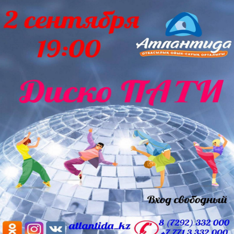 Семейно-развлекательный центр "Атлантида" ожидает ребят на развлекательную программу "Диско ПАТИ"!