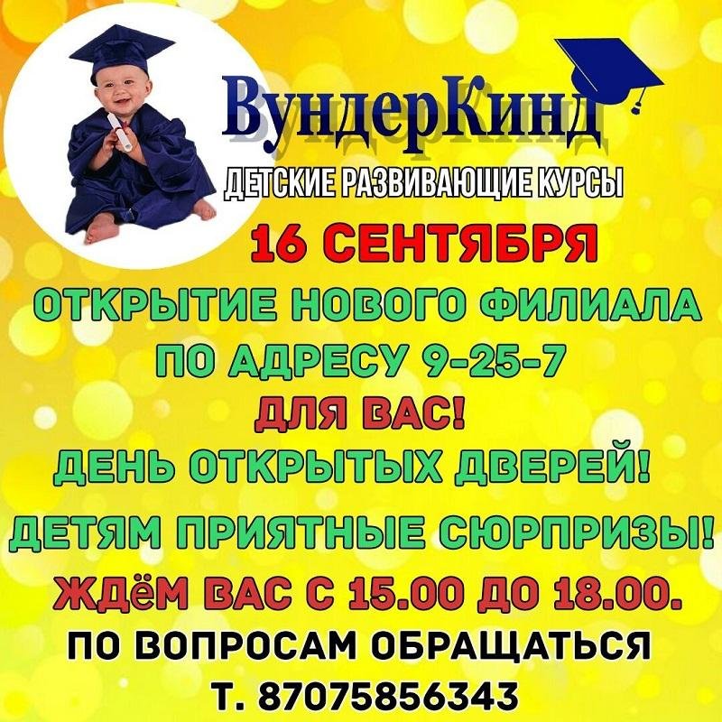 В честь открытия нового филиала детские развивающие курсы "ВундерКинд" приглашают детей и родителей на День открытых дверей, где маленьких жителей города ожидают приятные призы!