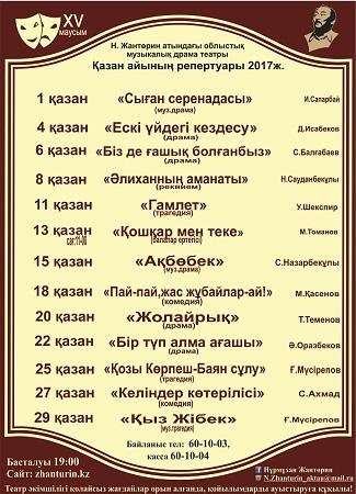 В Областном музыкальном драматическом театре имени Н.Жантурина состоится спектакль "Әліханның аманаты".
