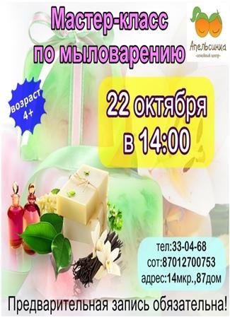 Детей Актау детский развивающий центр "Апельинка" приглашает на мастер-класс по мыловарению.