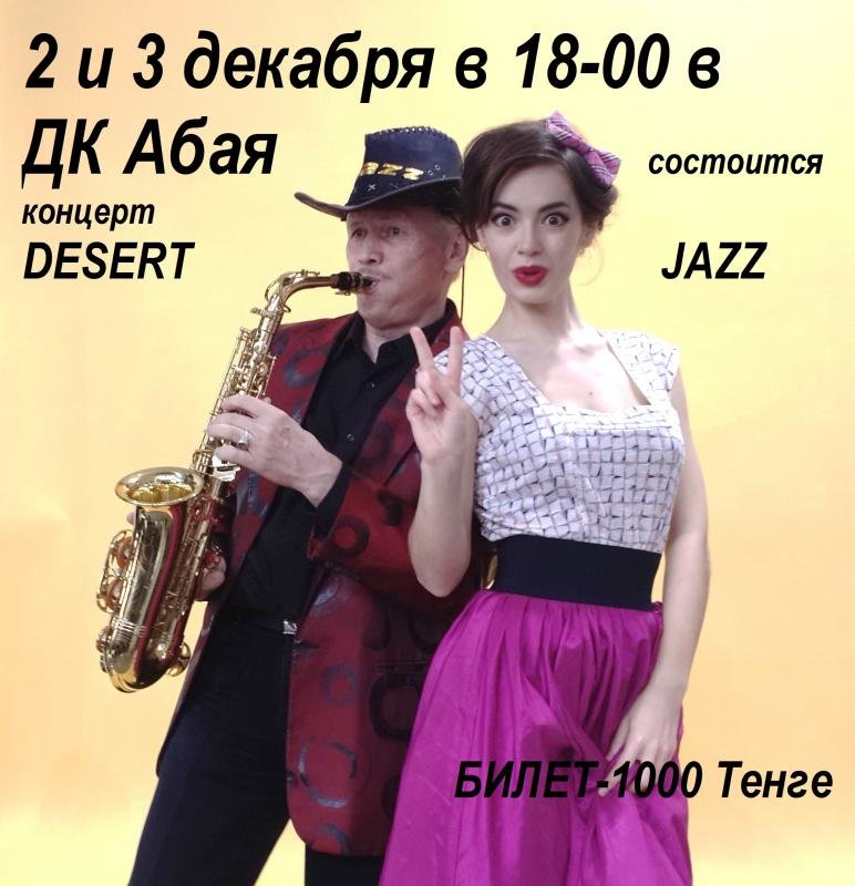 В Областной филармонии Мангистауской области имени М.Оскинбаева состоится джазовый концерт DESERT JAZZ с участием саксофониста Герата Исанбаева и танцевального ансамбля "Брейк-данс".