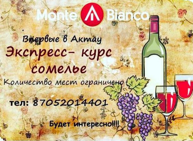 Дорогие друзья, желающие узнать все все о вине, магазин итальянскиех вин Monte Bianco приглашает на курсы начинающего сомелье. Три дня вместе с сомелье будут проводиться занятия и дегустация вин Италии, Франции, вин Нового света. После окончания курса выдается сертификат.