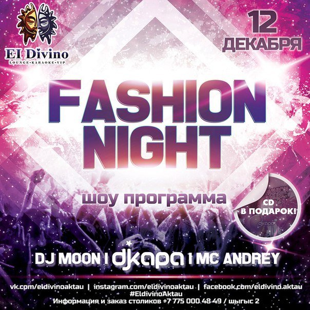 12 декабря (суббота) в El Divino Lounge Bar пройдет вечеринка "FASHION NIGHT"!