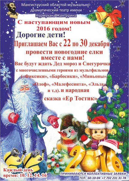 С 22 по 30 декабря музыкально-драматический театр им.Н.Жантурина приглашает на новогоднее представление!