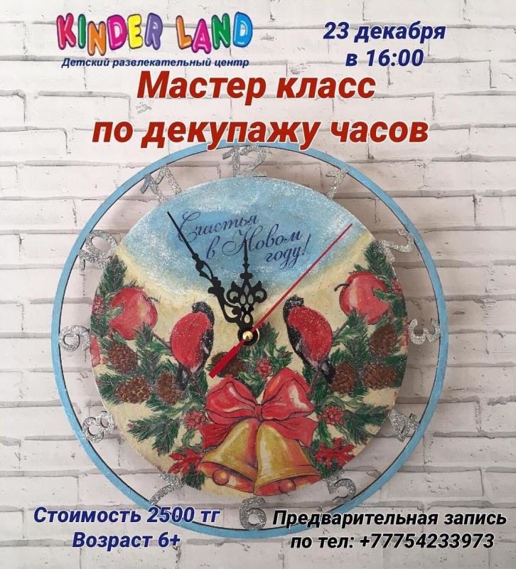 В субботу состоится мастер-класс по декупажу новогодних часов.