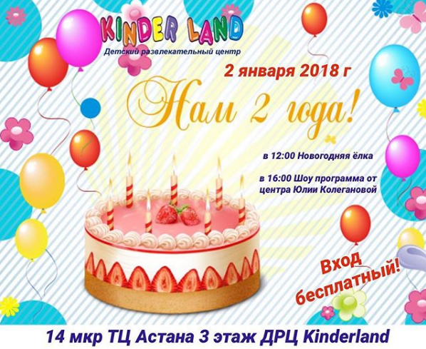 2 января детскому развлекательному центру "Киндер Лэнд" исполняется два года и приглашает всех отметить день рождения вместе с нами!