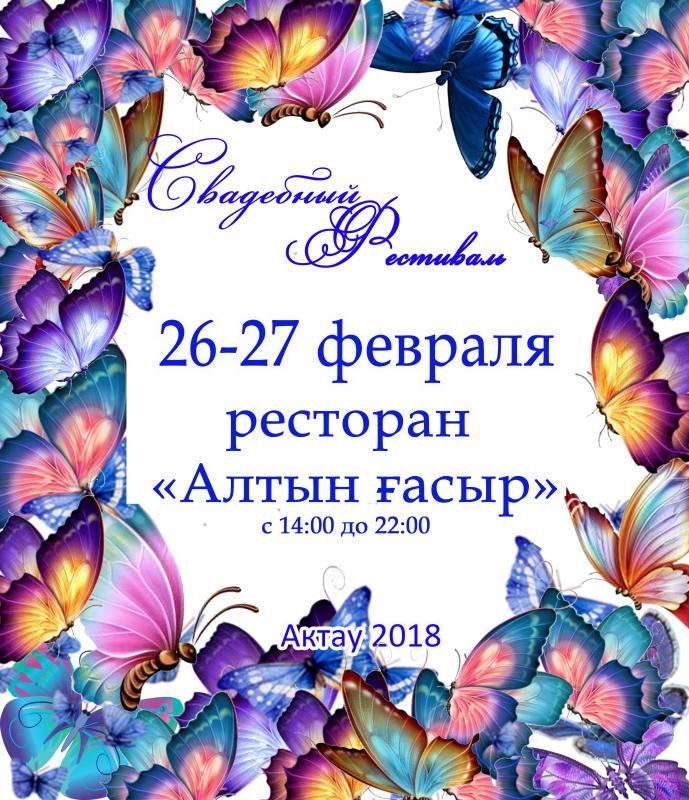 Приглашаем будущих женихов и невест посетить "Свадебный Фестиваль - Актау 2018". Вас ожидает выставка товаров и услуг. Посетив выставку, вы сможете организовать главный праздник жизни всего за один день!