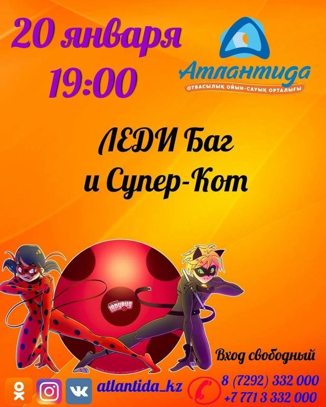 Семейный развлекательный центр "Атлантида" приглашает посетить развлекательную программу для детей "Леди Баг и Супер-Кот".