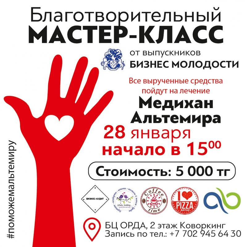 Жителей Актау приглашают на благотворительный мастер-класс, вырученные средства от которого пойдут на лечение нейробластомы маленького Альтемира Медихан.
