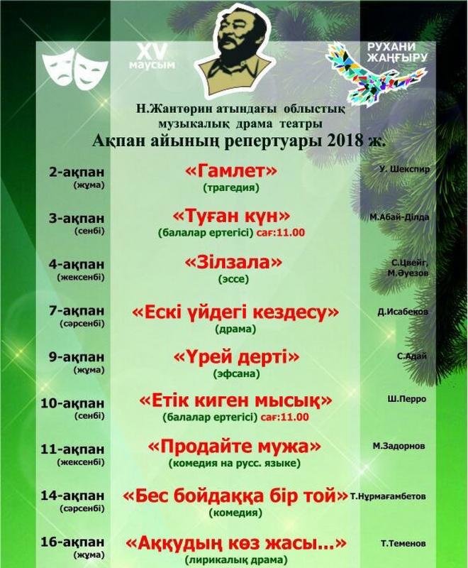 Музыкально-драматический театр имени Н.Жантурина приглашает на спектакль "Туған күн".