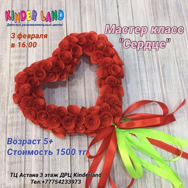 В детском развлекательном центре "Киндер Лэнд" в субботу в 16:00 пройдет мастер-класс для детей "Сердце".