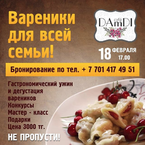 Вареники для всей семьи! Гастрономический ужин и дегустация вареников в кафе Damdi.