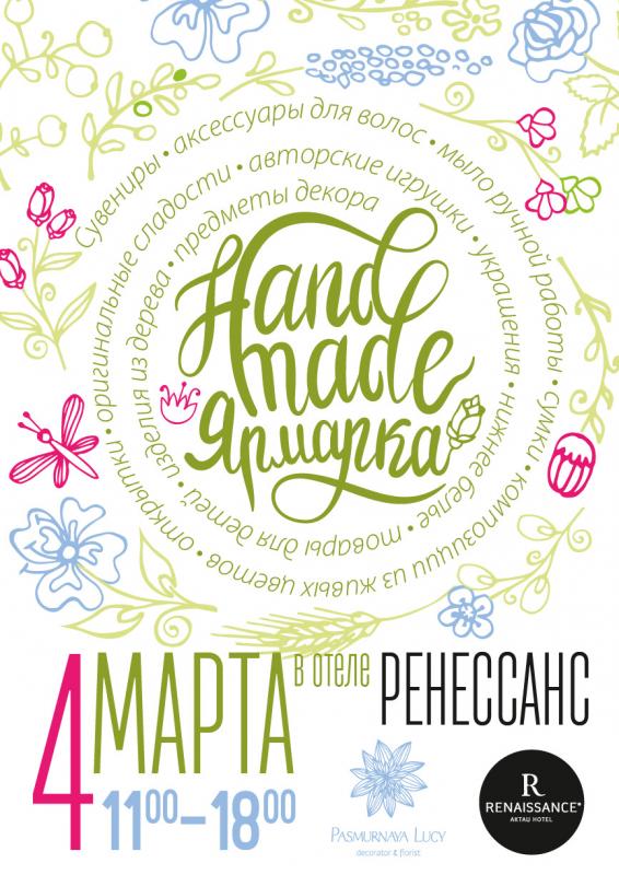 Жителей Актау приглашают на Handmade ярмарку, где будут представлены изделия лучших мастеров города! Гости смогут приобрести подарочки ко Дню 8 марта.