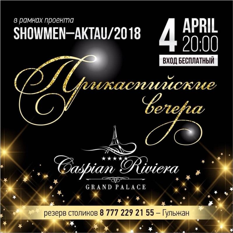 4 апреля, в 20:00 часов, отель "Саspian Riviera Grand Palace" приглашает всех желающих на самую веселую, интеллектуальную вечеринку, где команды из участников "Showmen Aktau" (ведущие) будут блистать остроумием и находчивостью. Присоединяйтесь к мегавеселью!