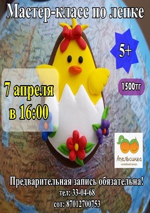 Детский развивающий центр "Апельсинка" приглашает на мастер-класс по лепке.