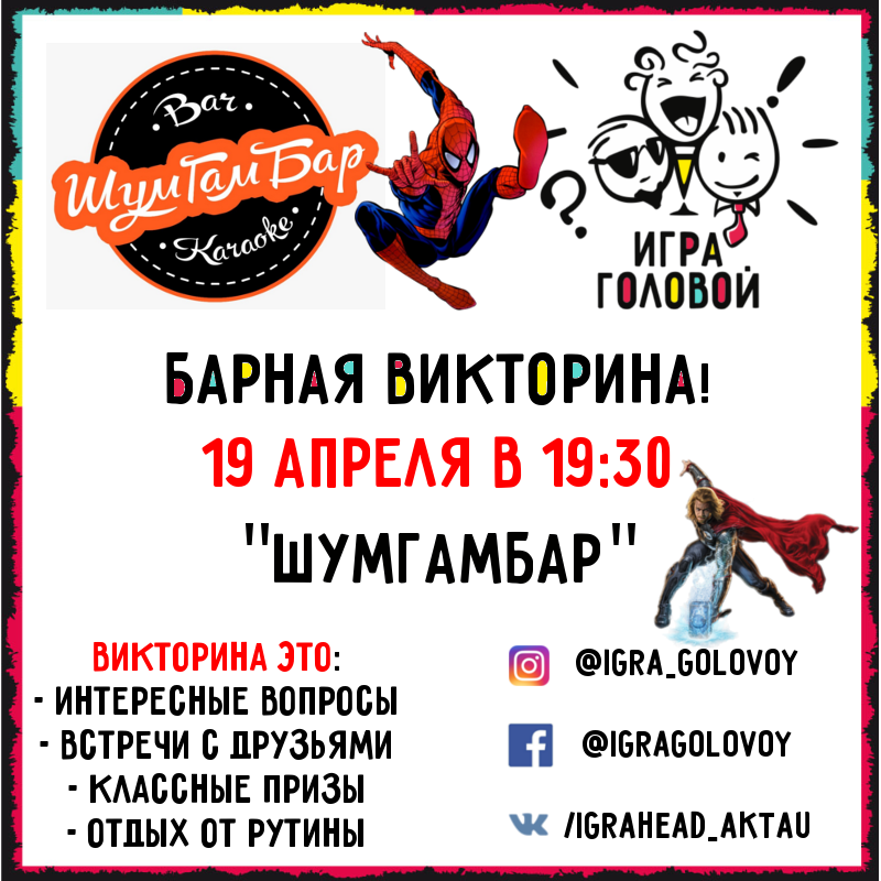 Ближайшая Игра головой состоится 19 апреля в 19:30 в ШумГамБар!