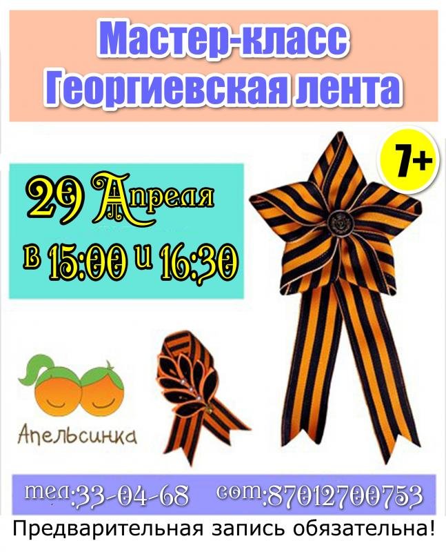 Развивающий центр "Апельсинка" приглашает детей на мастер-класс по лепке "Георгиевская лента".