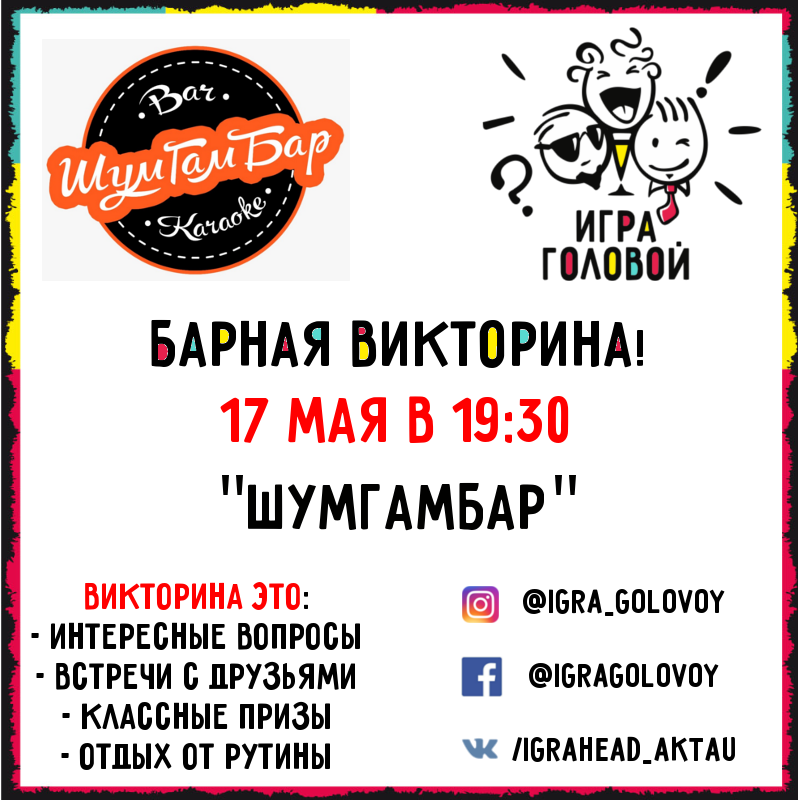 Ближайшая Игра головой состоится 17 мая в 19:30 в ШумГамБар!