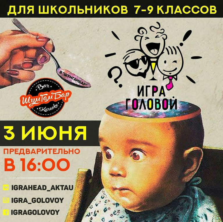 3 июня, в 16:00 часов, в "ШумГамБар" состоится первая викторина "Игра головой" для школьников! Играют ученики 7-9 классов. Будет интересно, полезно и увлекательно!