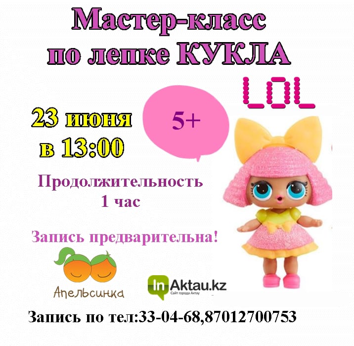 Детки будут лепить в эту субботу куклу LOL! Продолжительность мастер-класса 1 час, необходима предварительная запись.