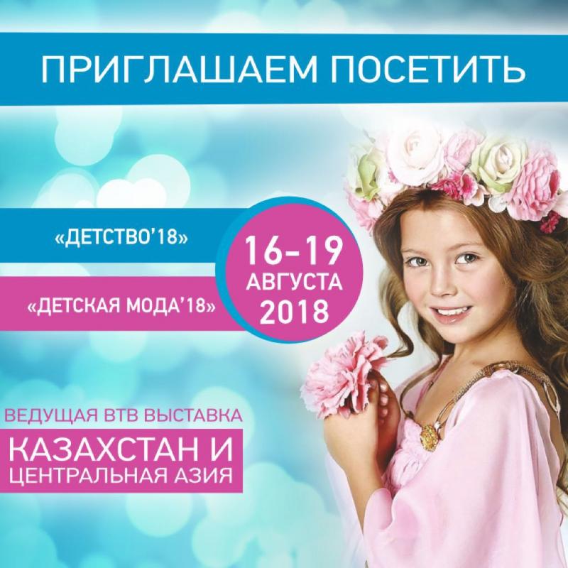 Приглашаем посетить выставки "Детство" и "Детская Мода" 16-19 августа 2018: г. Алматы, ВЦ "Атакент", 10 павильон