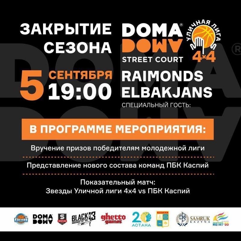 Сегодня, 5 сентября, на площадке Doma Doma Street Court пройдет закрытие баскетбольного сезона. На мероприятие приглашаются все желающие.
