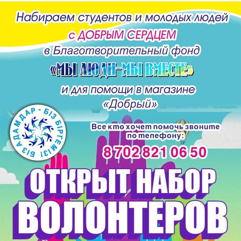 По словам директора фонда "Мы люди, мы вместе" Имангазы Досмухамбетова, молодые люди будут помогать в социальном магазине для многодетных и малоимущих семей.