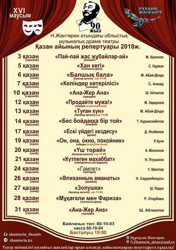 Музыкально-драматический театр имени Н.Жантурина приглашает на драму на казахском языке "Ескі үйдегі кездесу".