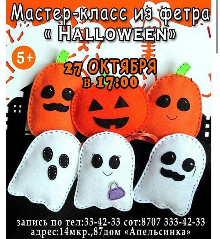 Детский развивающий центр "Апельсинка" в канун самого красочного праздника Хэллоуин проведет тематический мастер-класс по работе с фетром Hallowen.