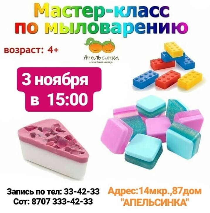 Детский развивающий центр "Апельсинка" приглашает маленьких рукодельников на мастер-класс по мыловарению.