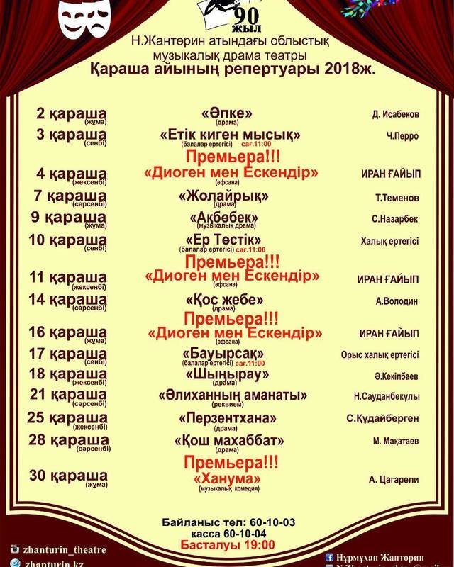 Музыкально-драматический театр имени Н.Жантурина приглашает зрителей на спектакль "Жолайрық".