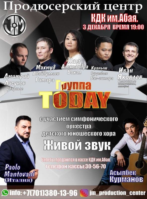 Жителей Актау приглашают на Концерт группы Today с участием симфонического оркестра и детского юношеского хора.
