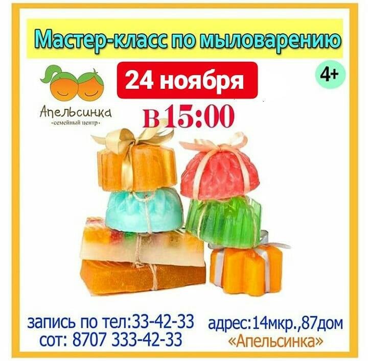 Детский развивающий центр "Апельсинка" проведет мастер-класс по мыловарению для детей.