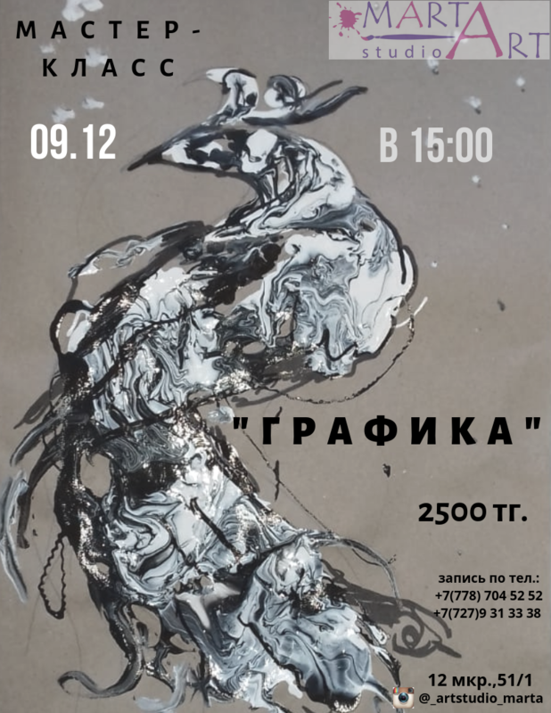 Студия "МартАрт" предлагает мастер-класс в технике "Графика". Занятия ведет один из лучших преподавателей города, известный художник Болат Бакибаев.
