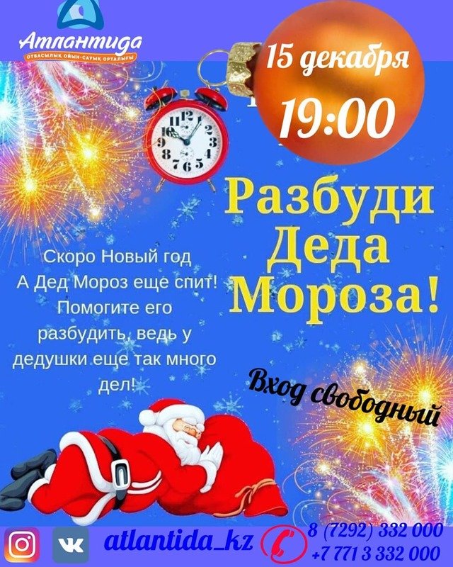 Семейный центр "Атлантида" приглашает маленьких друзей на праздничную шоу-программу "Разбуди Деда Мороза".