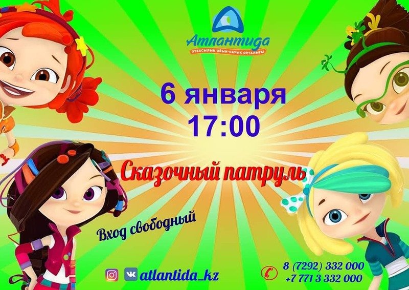 6 января, в 17:00, семейный центр "Атлантида" ждёт детей на увлекательное приключение со Сказочными патрулем.