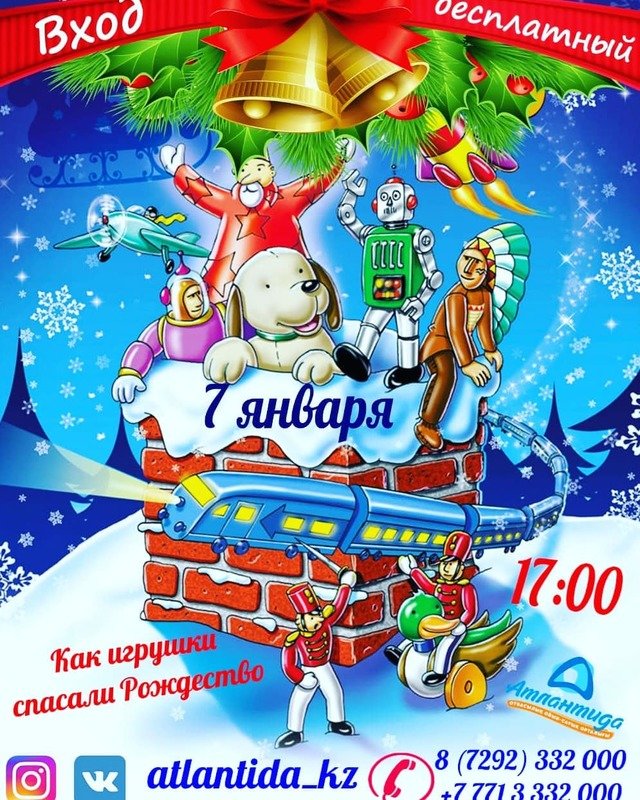 Новый год и Рождество - это волшебство и сказка! 7 января, в 17:00, родителей и детей приглашают на рождественскую сказку "Как игрушки спасали Рождество".