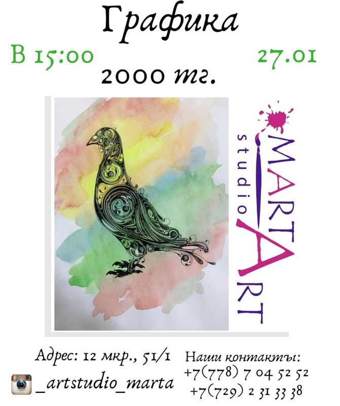 Студия "МартАрт" приглашает всех желающих на мастер-класс в технике графика от преподавателя высшей категории, известного художника Бакибаева Болата Адиловича в интересном очень модном стиле анималистика!